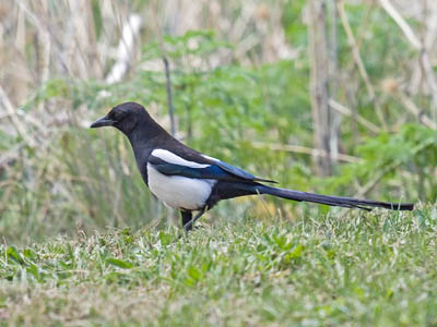 This large flashy bird with a long tail is a ranchland bird in the West. The only similar bird in North America is the Yellow-billed Magpie of the Central Valley of California.