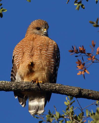 These bright red birds are found toward the tops of tall trees in the southern United States.